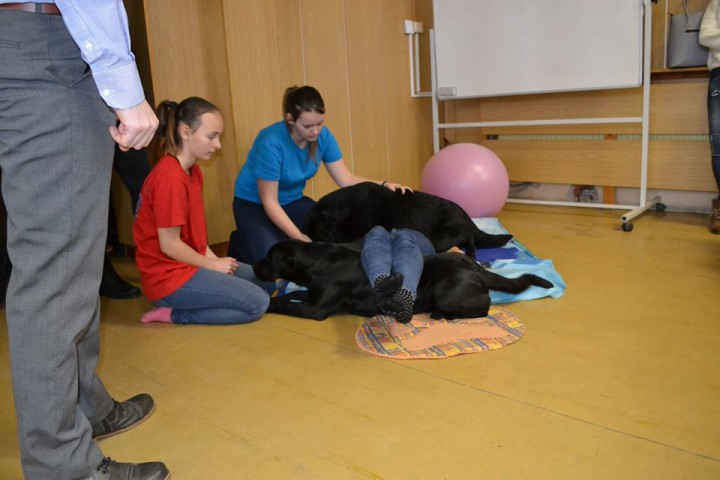 Veľká vďaka patrí môjmu dlhoročnému priateľovi a spolumajiteľovi našej Tyji - Brigburn Lab´s Valley Do, ktorý učí mladých ľudí ako pomôcť hendikepovaným ľuďom so svojimi psíkom. Samozrejme takýto psík musí prejsť špeciálnou prípravou a záverečnou skúškou, aby mohol túto prácu vykonávať. Fotky sú z prezentácie kanisterapie na dni otovrených dverí na Univerzite veterinárneho lekrárstva a farmácie v Košiciach. Rasťo sa tak prezentoval spolu so svojimi žiakmi a psíkmi, ktorí navštevujú strednú veterinárnu školu v Košiciach. A ja som vďačná, že Tyja pracuje v tak skvelom týme a pomáha tak ľuďom, ktorým nebolo dopriaté zdravie, tak ako nám ostaným.