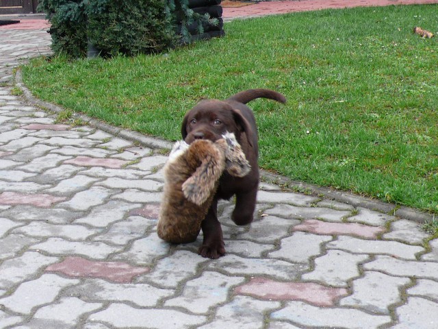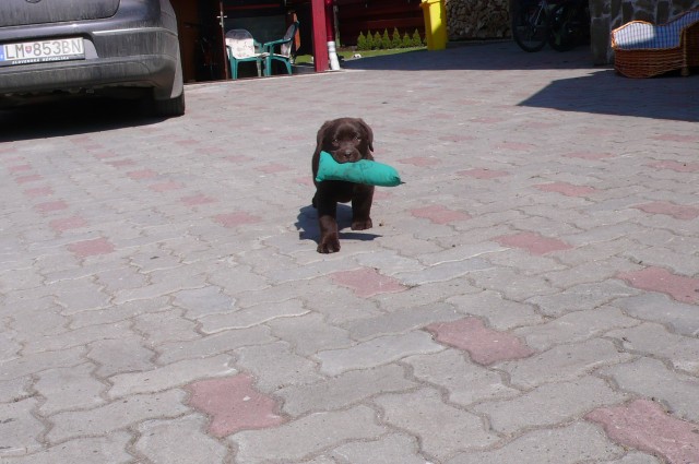 Svoju silnú fixáciu na aport zdedil po mame Fíbí, náhodou som v našom archíve našla fotky Fíbínky - Bosiho mamy približne v jeho veku, 2.5 mesiacoch .Ich podobnosť je až neuveriteľná...