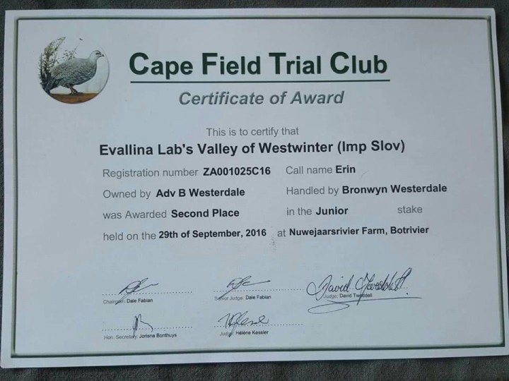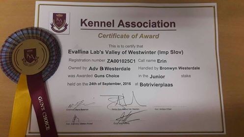 Gundog 2016 of Port Elisabet Fiel trial trophy