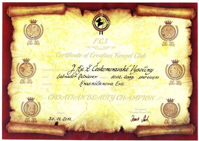 | 18.11.2011 | Špeciálna FCI skup.7-8, Zagreb Chorvátsko | V1,CAC | pracovná/working | Andras Korozs (HUN) |